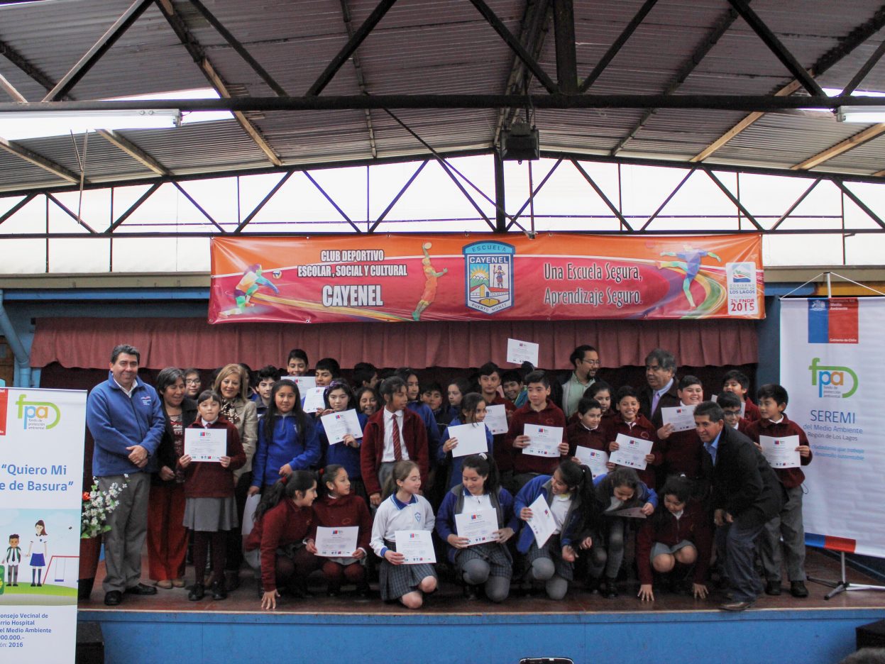 Con una ceremonia realizada en la Escuela Cayenel, se dio inicio al proyecto de educación ambiental “Quiero Mi Barrio Libre de Basura”, financiado por el Fondo de Protección Ambiental (FPA) del Ministerio de Medio Ambiente, que beneficiará a 80 estudiantes y un total de 2500 habitantes del sector de Puerto Montt. El Barrio Hospital, está compuesto por los sectores de Chin–Chin, Chile Barrio y Cayenel.