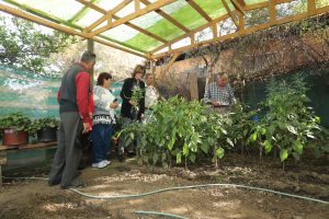 El recorrido comenzó en la casa de Don Gastón, quien tiene en su casa un invernadero comunitario, el cual se desarrolló en el marco del Programa Vínculos, el que impulsa actividades remuneradas de acuerdo a los intereses de los vecinos para mejorar su estado ocupacional y calidad de vida.
