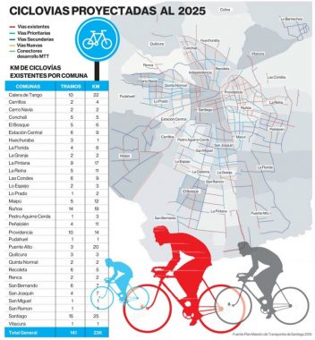 En este caso, la demanda apareció primero y la respuesta vino años después con un plan de construcción de ciclovías más estructural que integró en 2013 al “Plan Maestro de Transportes de Santiago 2025”. De acuerdo a este, para 2020 en la Región Metropolitana se proyectan 486 kilómetros nuevos de vías para bicicletas.